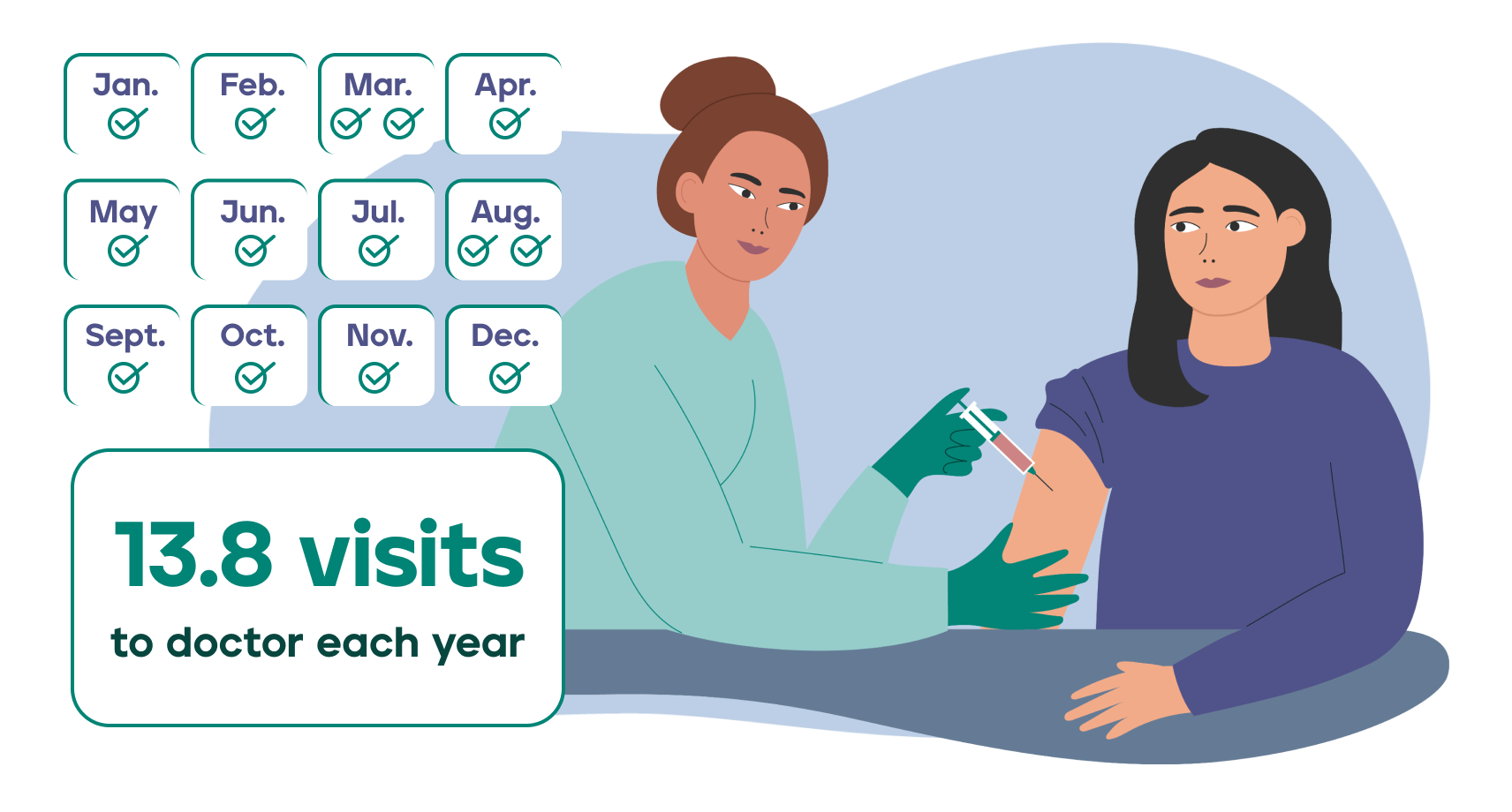 Acute, emergency visits are common for patients managing a complex, chronic condition. Patients with invisible illness visit the ED 1.4 times per year and visit Urgent Care 1.0 times per year.